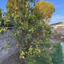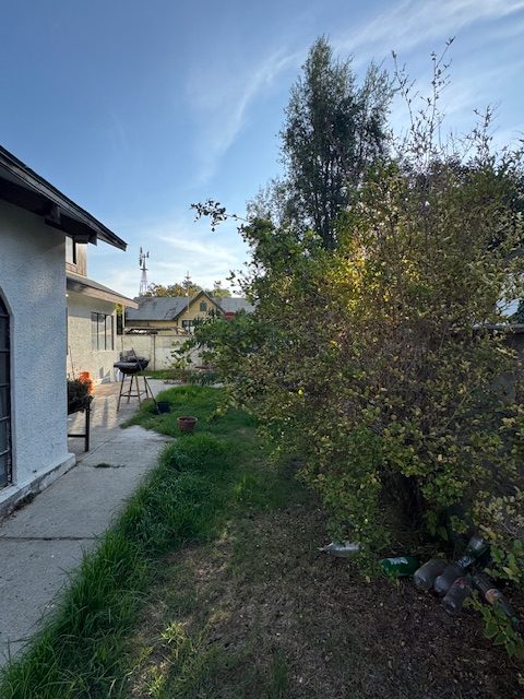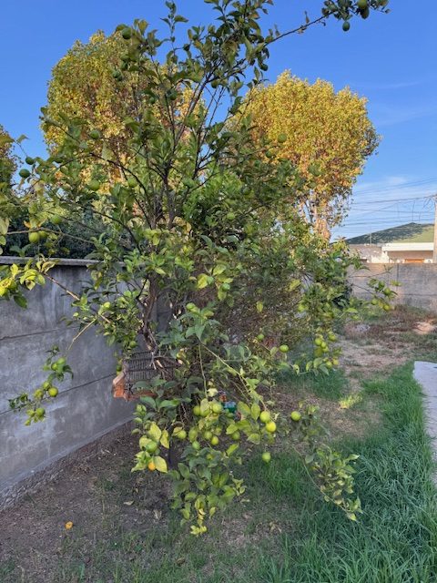 Antejardín, patio con césped y árboles frutales. Bodega. Pozo.