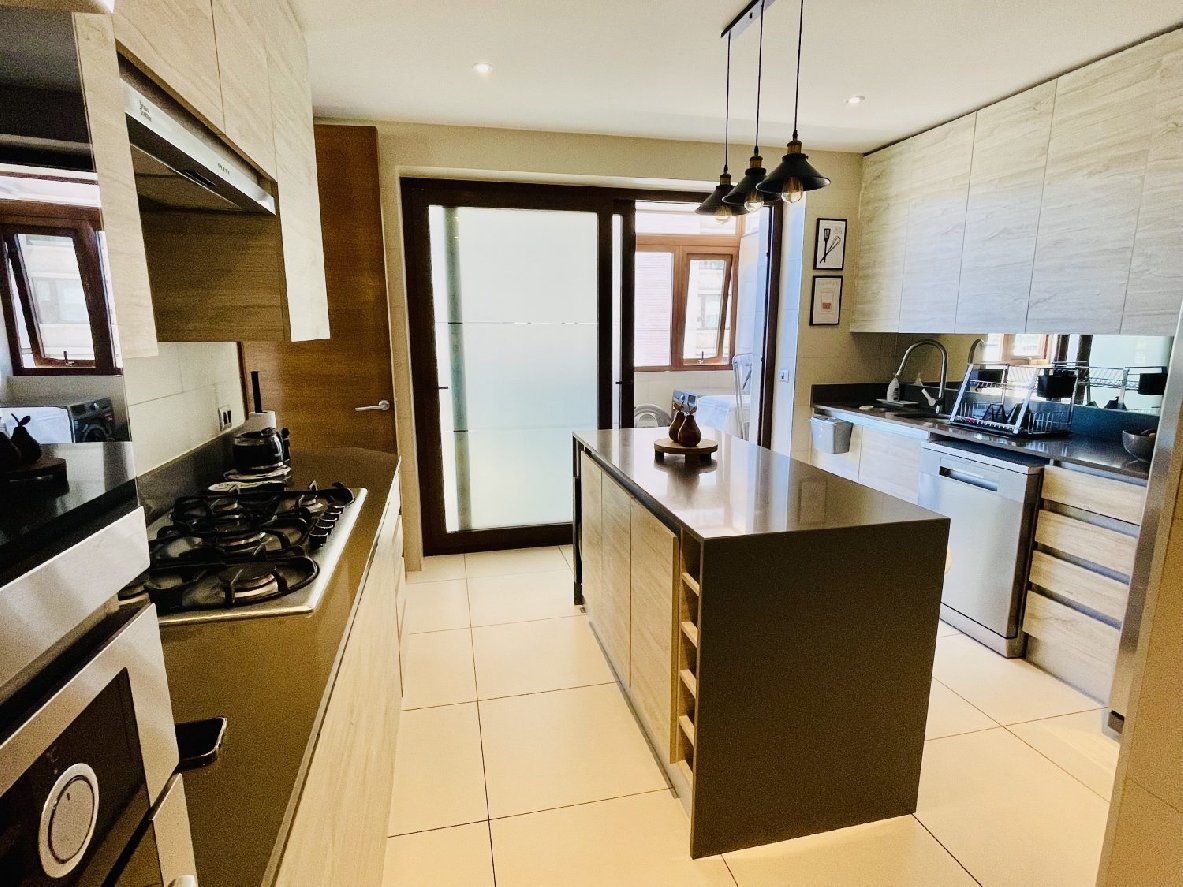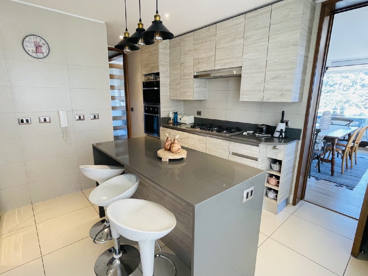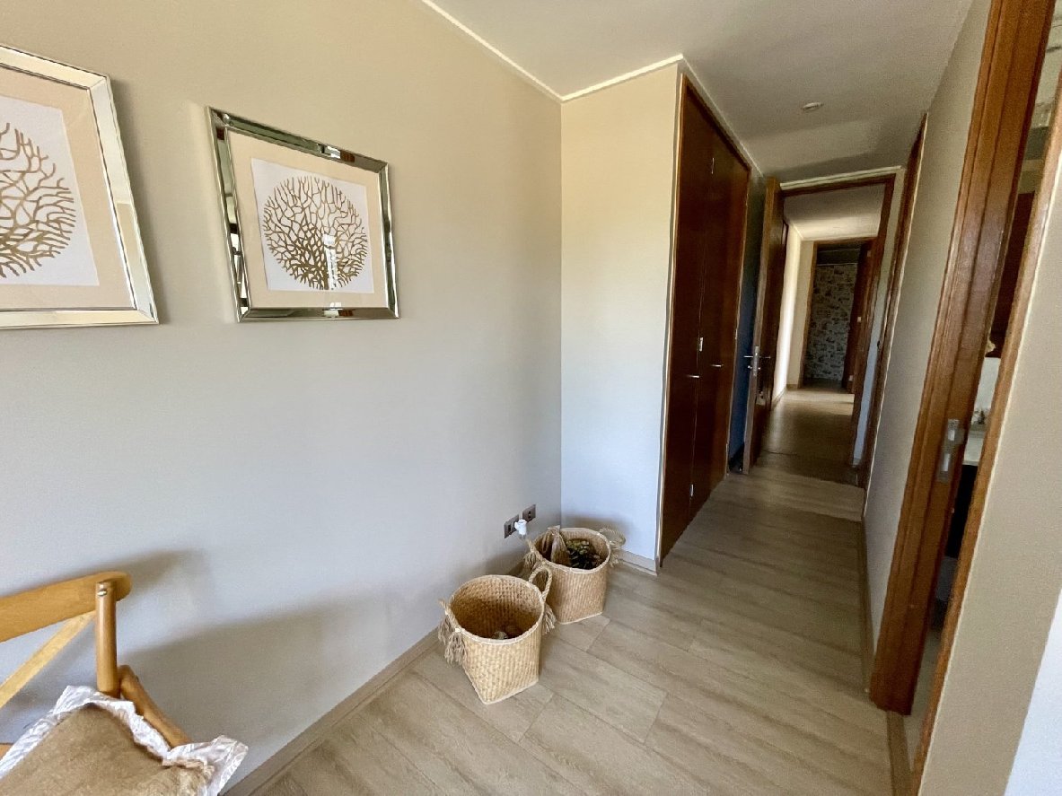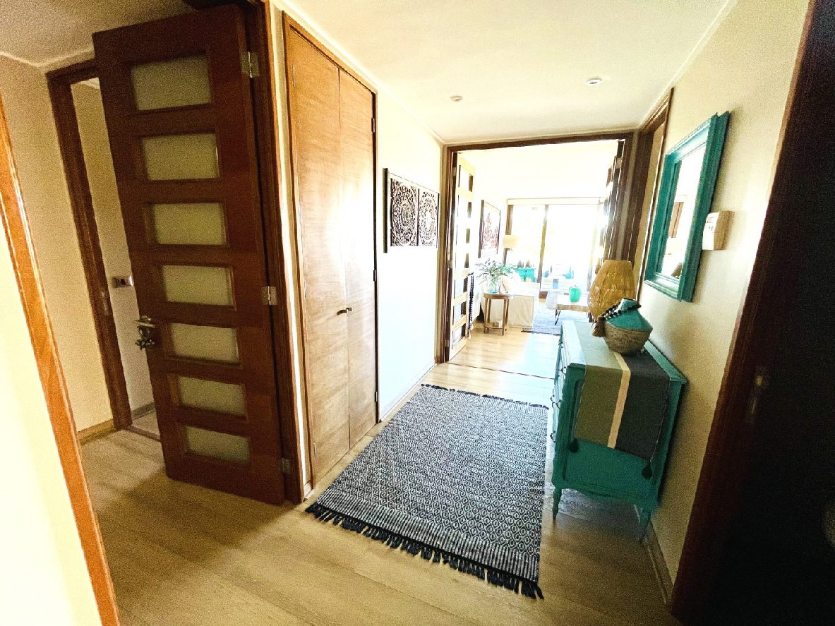Cuenta con hall de entrada, living comedor con piso flotante, ventanas de termo panel, 3 cómodos dormitorios con closet, principal con walking closet, sala de estar cerrada (posible cuarto dormitorio), 3 baños, cocina independiente, amoblada y equipada. Amplia logia, terraza cerrada. 2 estacionamientos (1 subterráneo y otro de superficie y techado) y 1 bodega. 164 mtrs2 totales.