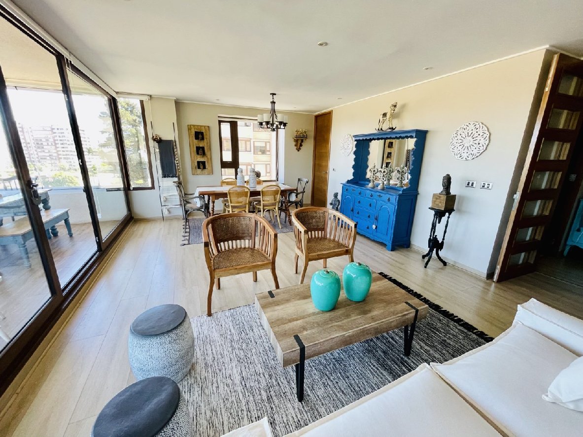 Amplio y cómodo departamento de 140 mts2, más amplia terraza cerrada de 16 mts2 y logia. Ubicado en el mejor barrio residencial de Concón. Cercano a Colegios, centros comerciales, restoranes y gastronomía en general, parques y áreas verdes, cultos, servicios de salud, estaciones de servicio y playas. A minutos de la rotonda de Concón y del centro de Reñaca. Excelente conectividad.