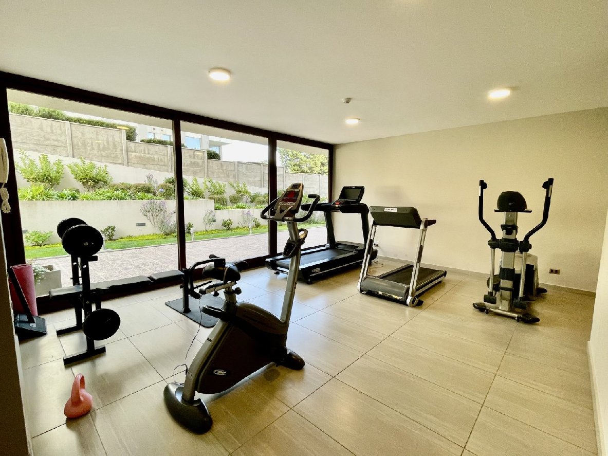 El Condominio cuenta con piscina exterior, sala de estudio, sala de usos múltiples, gimnasio, baño para personas con discapacidad en primer nivel, 2 quinchos y conserjería con acceso controlado las 24 horas.