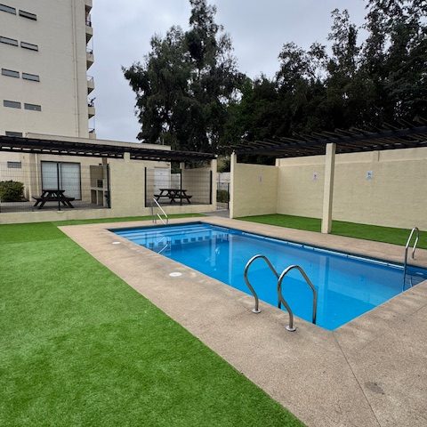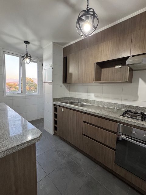 Moderno y cómodo departamento, ubicado a 2 cuadras de la estación de metro tren Villa Alemana, a pasos del centro de la ciudad, comercio, servicios, colegios, centros de salud y equipamiento en general. Barrio residencial tranquilo y consolidado. El departamento, de 75 metros cuadrados, cuenta con amplio living comedor con amplia terraza, cocina amoblada y equipada con horno y campana eléctrica, encimera a gas, cubierta de granito, lavaplatos doble, logia con instalación para lavadora y secadora, 3 amplios dormitorios con closet, 2 baños completos, (un dormitorio en suite con amplia terraza soleada). Terrazas con mallas de seguridad, cortinas roller en todas las ventanas y luminarias. Cuarto piso, orientación nororiente. Cuenta con un estacionamiento subterráneo de buen tamaño y con una amplia bodega. Edificio de 5 pisos, construido en año 2019. Cuenta con ascensor. Sala de recepción, casilla para cada departamento, espacio para bicicletas y conserjería. Gastos comunes aproximados $130.000. Contribuciones totales $60.000 por cuota. Disponibilidad inmediata.