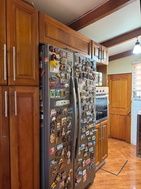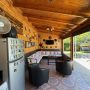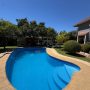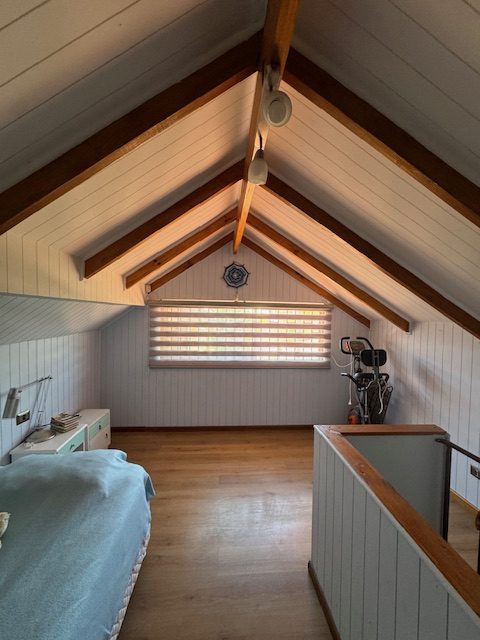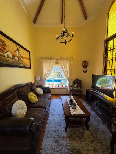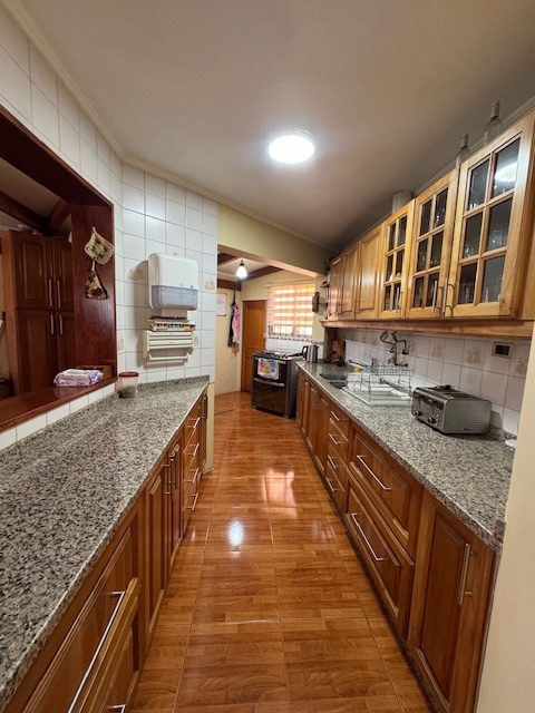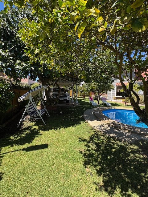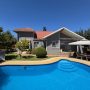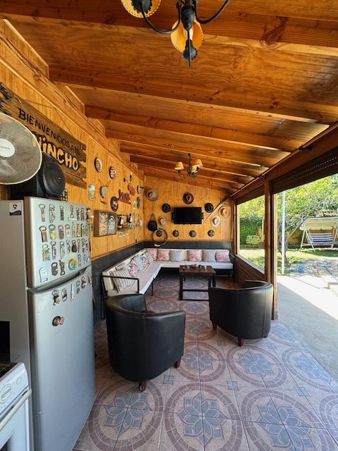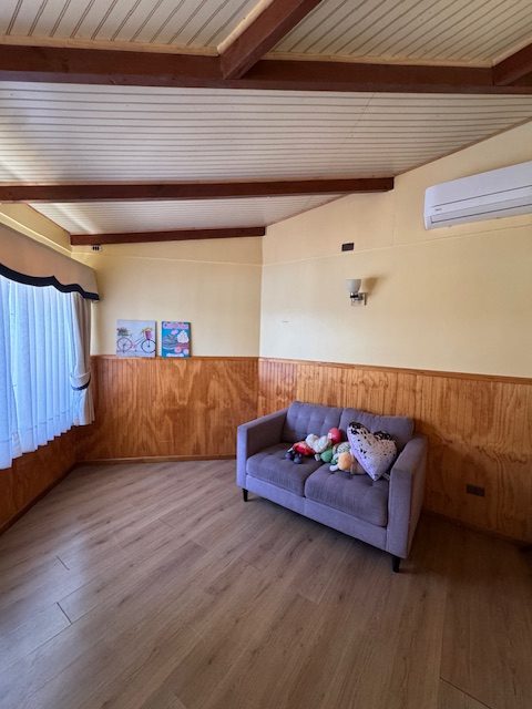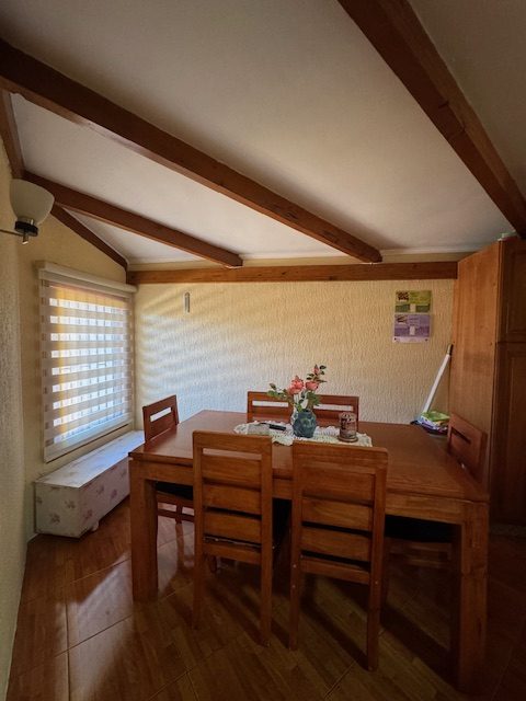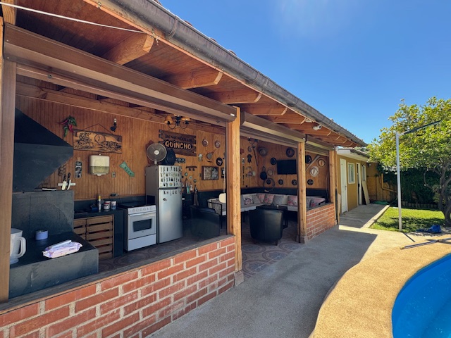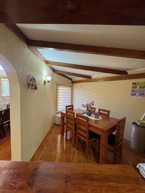 La vivienda de 2 pisos, con excelente orientación, muy soleada, de construcción mixta (albañilería y tabiquería), cuenta con amplio living y comedor, con vigas a la vista, aplicaciones en piedra, estufa de combustión lenta por pellets, amplia cocina amoblada y equipada con muebles modernos de madera y cubiertas de granito, doble lavaplatos, espacio para refrigerador grande y para cocina de 6 quemadores, conectada con cómodo comedor de diario, y salida a la logia techada de 14 metros cuadrados, con instalación para lavadora y secadora. 3 dormitorios con closet, 2 baños completos (uno en el dormitorio en suite), escalera de caracol al segundo piso en donde dispone de un gran dormitorio con un baño completo, en suite. Piso termolaminado en toda la casa, Piso de cerámica en cocina y baños. Vivienda principal de 110 metros cuadrados. Cuenta con departamento independiente, de 40 metros cuadrados, con un amplio dormitorio con closet y baño completo en suite, que sirve para el Quincho y la Piscina. Quincho de 20 metros cuadrados, con parrilla, campana y equipamiento. Con cierre con persianas eléctricas y manuales, conectado con el hermoso patio y la piscina. 2 bodegas cerradas de excelente construcción, independientes de 15 metros cuadrados en total. Toda la casa cuenta con protecciones metálicas, alarma y cámaras de vigilancia. Excelentes cierres perimetrales. Aire acondicionado en suite, dormitorio del segundo piso y en el departamento exterior. Piscina de hormigón de 30 metros cúbicos, con fulget, y equipamiento de bomba y filtro. Ante jardín y patio con césped, riego tecnificado, árboles y arbustos ornamentales, y árboles frutales (paltos, limones, papayo, naranjos, peral, manzano, níspero y chirimoyo). 2 accesos independientes para estacionamientos, con portón eléctrico, uno techado para 2 a 3 vehículos y otro para un vehículo. Superficie de 600 metros cuadrados de terreno. Cuenta con Recepción Municipal.