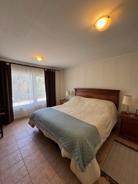 Preciosa parcela de 5.000 mts2 con casa de 170 mts2, en la mejor Parcelación –Barrio Privado de Villa Alemana, situada a 10 minutos del centro de la ciudad, a 5 minutos del acceso a la Autopista Troncal Sur, a comercios, colegios, áreas verdes, centros deportivos, y comercio en general. El condominio cuenta con acceso controlado las 24 horas. La vivienda de un piso estilo canadiense, con muy buena orientación, dispone de hall de acceso, amplio living comedor con bar y amplios ventanales que proporcionan excelente luz y vistas; comedor independiente, amplia cocina amoblada y equipada, con comedor diario, logia, 4 amplios y soleados dormitorios, todos con closet, dormitorio principal en suite con walking closet y amplio baño completo con ducha, y tina de hidromasaje. Y otro baño completo. Todas las ventanas de termo panel. Excelente aislación térmica invierno y verano. Entre sus instalaciones y equipamiento, dispone de gran piscina, con deck de madera, bomba y filtro, estacionamiento para varios vehículos, portón eléctrico, parrilla, zona de esparcimiento, y bodega. Bastante vegetación nativa entre árboles y arbustos. Arboles frutales (nogales, limones y paltos entre otros, y varias palmeras. Riego tecnificado. Agua potable por red privada del condominio, luz eléctrica y planta de alcantarillado propia. Recepción total definitiva. Excelente ubicación dentro del condominio. A 150 metros del acceso. Gastos comunes $75.000 mensuales.