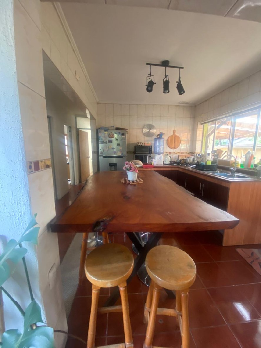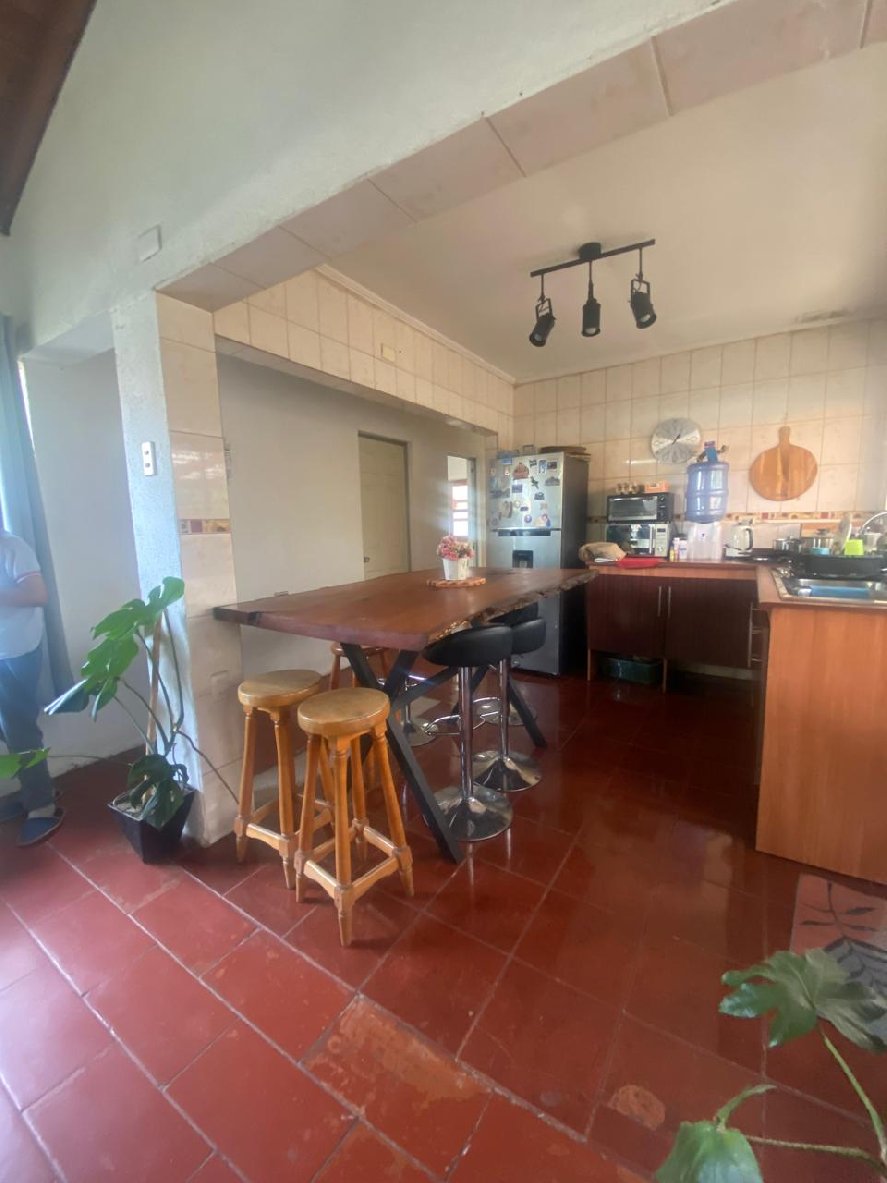 Casa de 1 piso, solida, de 4 dormitorios, principal en suite y con jacuzzi, 2 baños, amplio living comedor con estufa de combustión lenta y cocina americana amoblada.