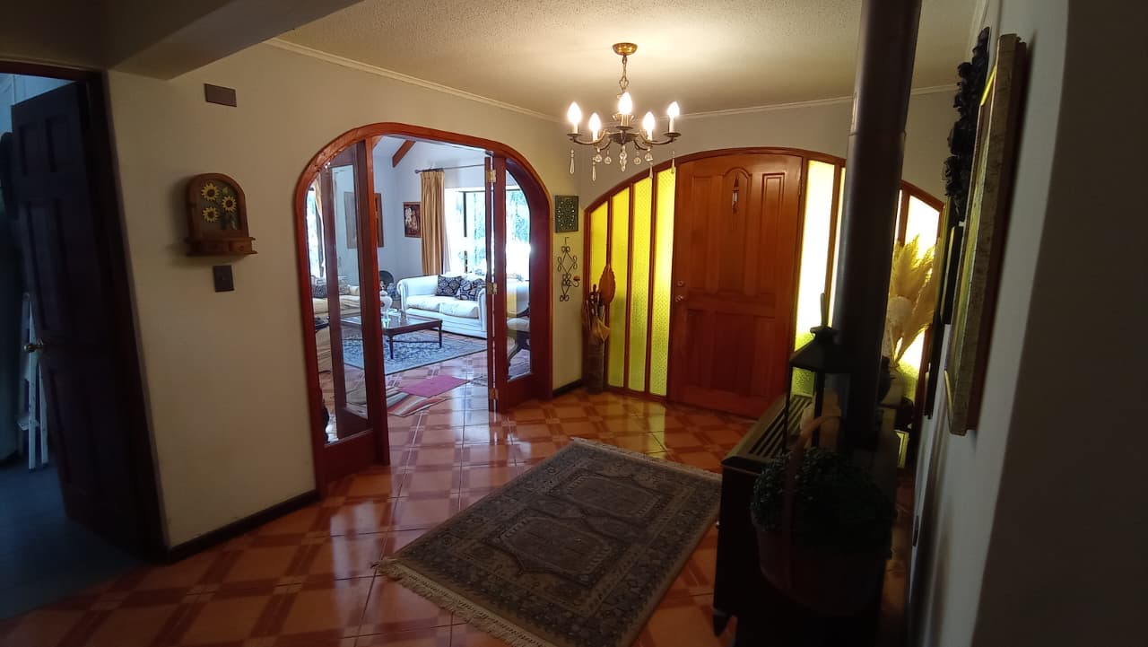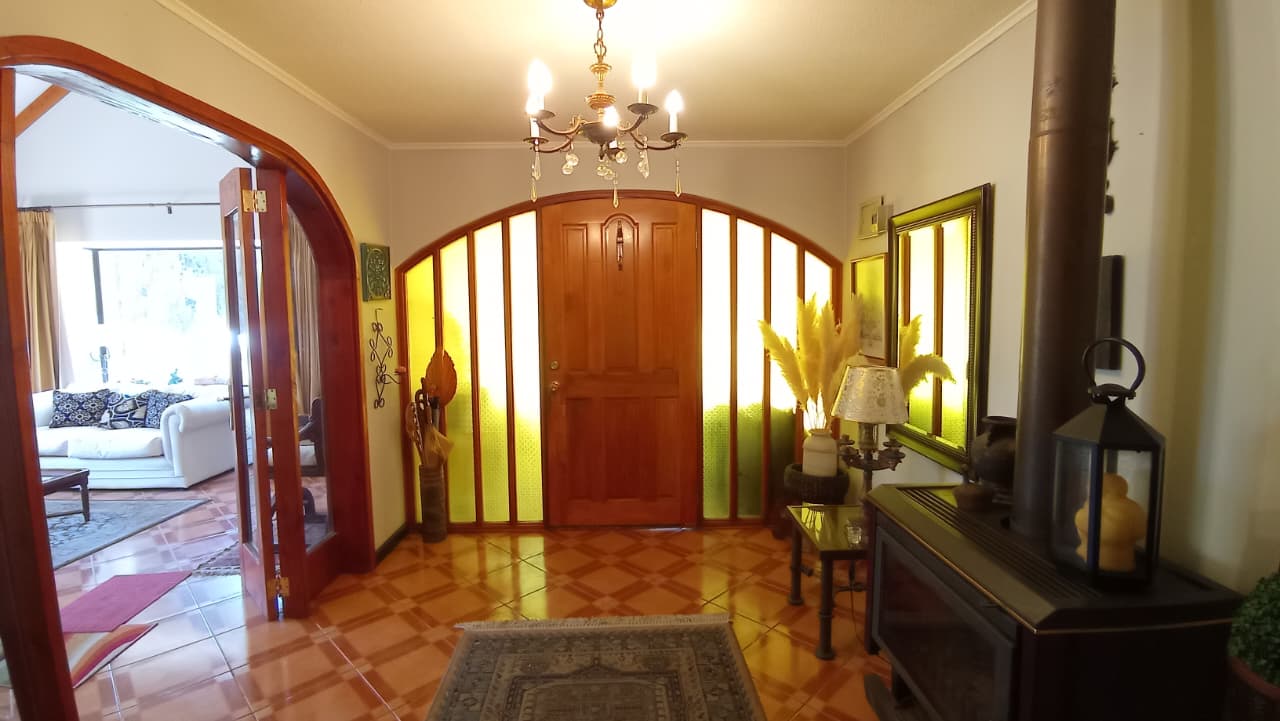 Cómoda y preciosa parcela con casa, ubicada en exclusivo y seguro condominio residencial, con excelente conectividad. Ubicada en Camino Lo Orozco, a 10 minutos del centro de Villa Alemana, 15 minutos del centro de Quilpué y a 30 minutos de Viña del Mar. A 1 hora aproximadamente de Santiago por camino Lo Orozco. La parcela tiene una superficie de 5200 mts2 y 203 mts2 construidos. Cuenta con una vivienda sólida, independiente, soleada, de 1 piso, hall de entrada, amplio living y comedor con vigas a la vista, sala de estar, estufa bosca, 4 dormitorios con closet, (dormitorio principal en suite y con jacuzzi), 3 baños, amplia cocina amoblada y equipada con encimera, horno eléctrico y campana. Dormitorio de servicio con baño. Terraza techada y pérgola. Vista a patio y jardines desde todas las dependencias de la casa. Estacionamiento para varios vehículos. Quincho techado con parrilla. Piscina. Antejardín, césped, árboles frutales y acceso controlado con portón eléctrico.