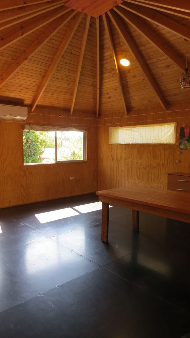 Cómodo y acogedor «espacio interior» en planta libre, de 30 metros cuadrados aproximados, de un piso, con aire acondicionado, más un baño completo y cocina amoblada, en el exterior, independientes y de uso exclusivo. Lindo patio con árboles y arbustos. Barrio muy tranquilo. Excelente seguridad.
